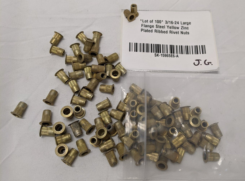 *Lot of 100* 3/16-24 Large Flange Steel Yellow Zinc Plated Ribbed Rivet Nuts