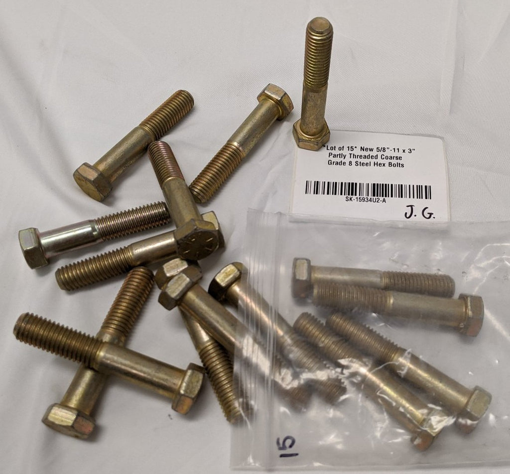 *Lot of 15* New 5/8"-11 x 3" Partly Threaded Coarse Grade 8 Steel Hex Bolts