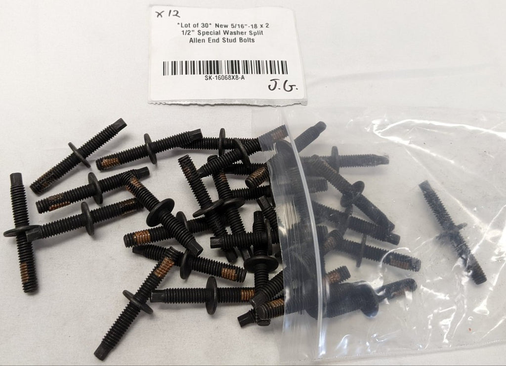 *Lot of 30* New 5/16"-18 x 2 1/2" Special Washer Split Allen End Stud Bolts