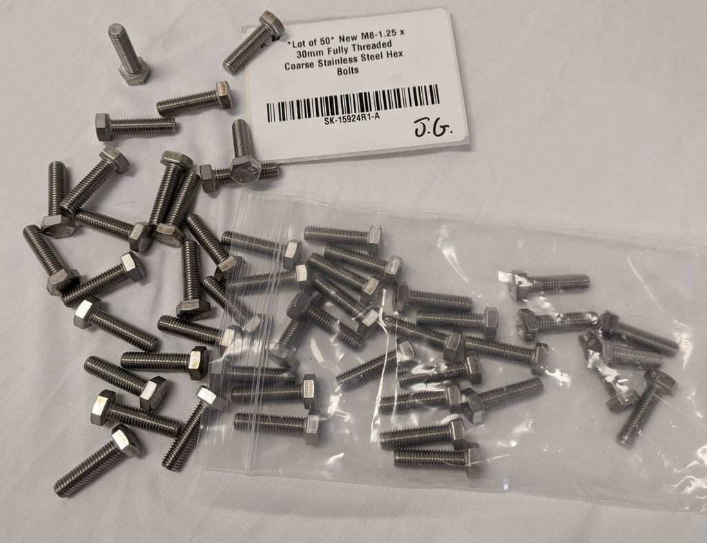 *Lot of 50* New M8-1.25 x 30mm Fully Threaded Coarse Stainless Steel Hex Bolts