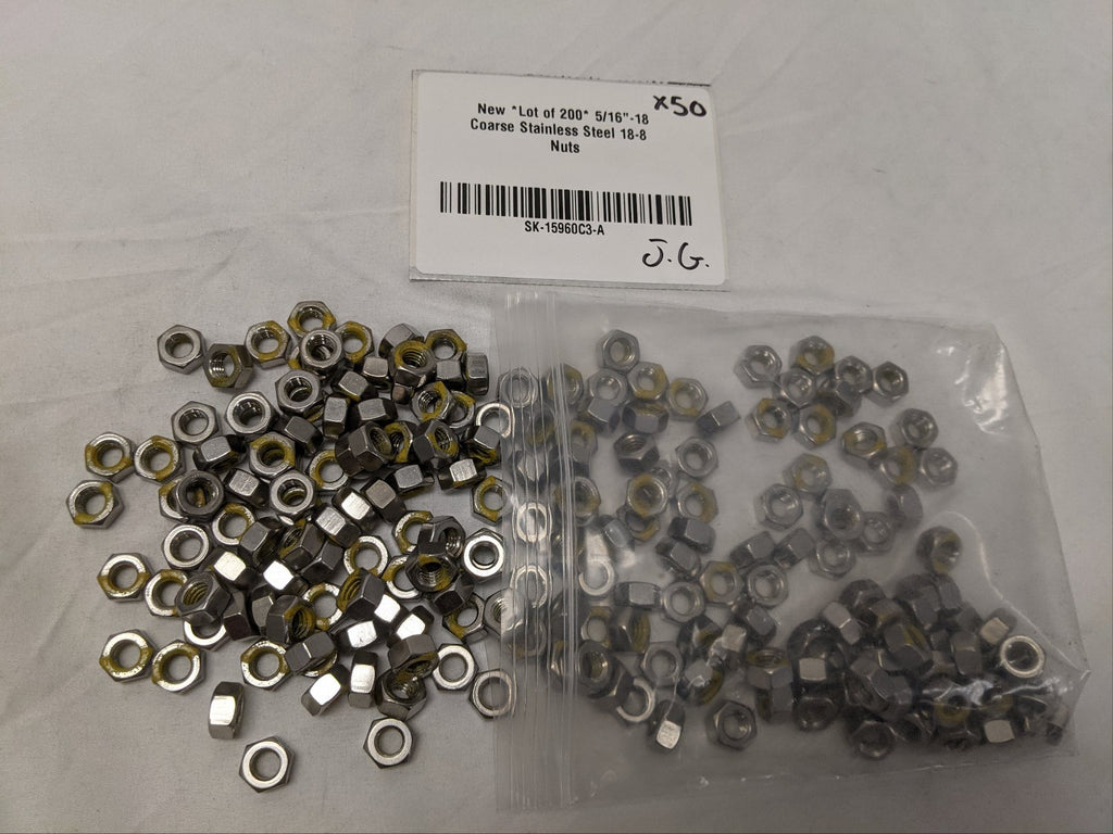 New *Lot of 200* 5/16"-18 Coarse Stainless Steel 18-8 Nuts